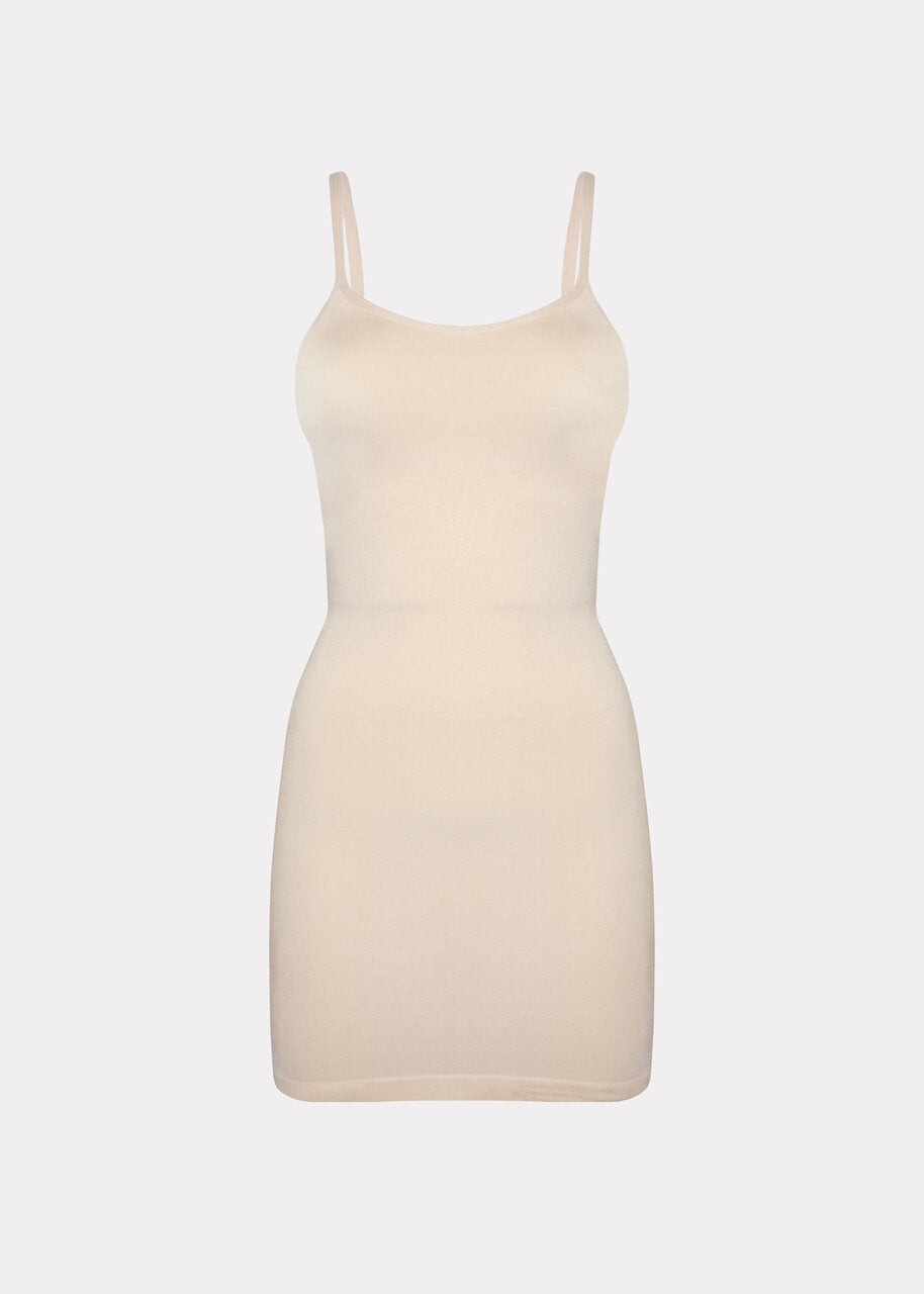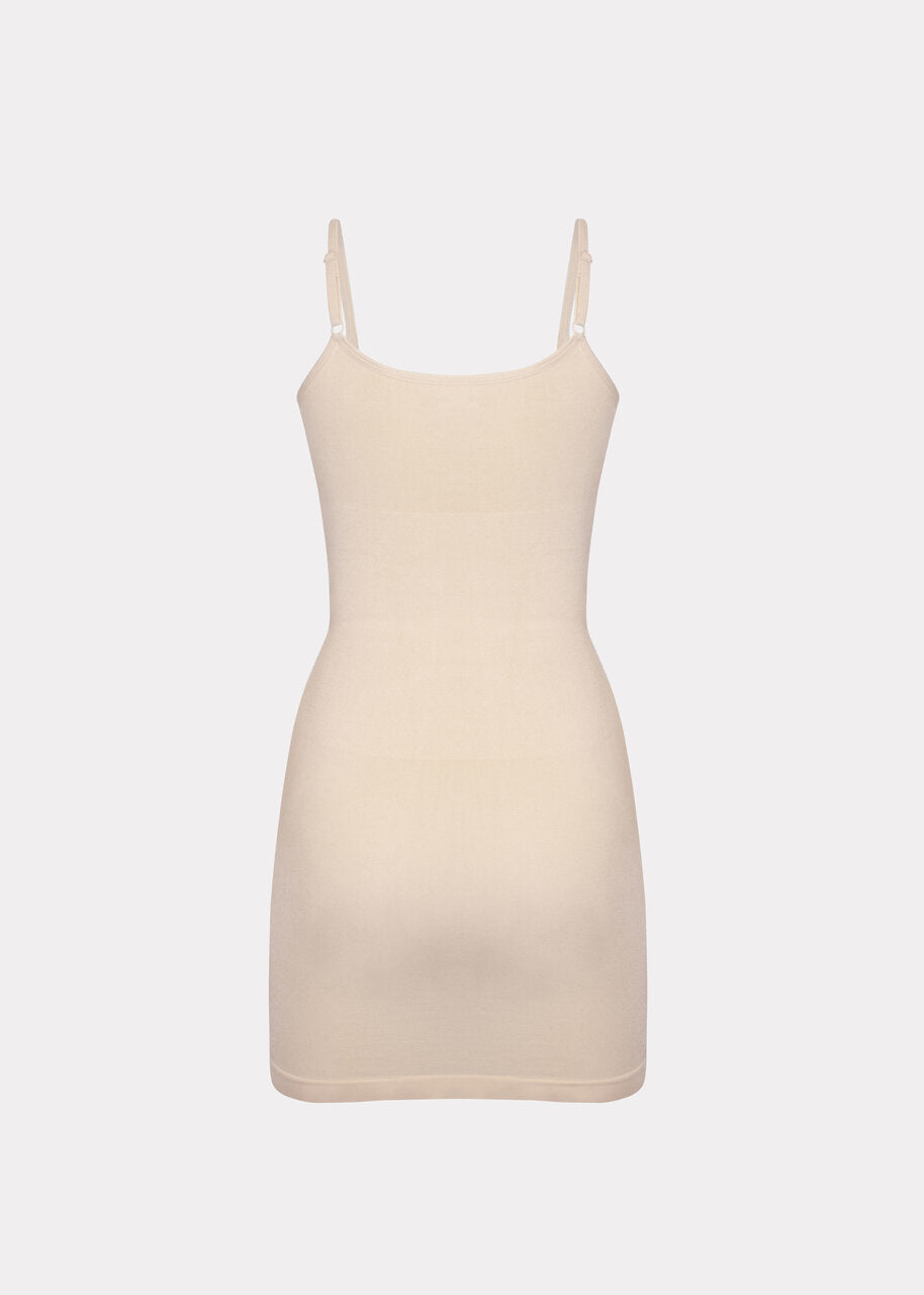 The Seamless Bodydress provides medium shaping for the tummy, waist, hips, and back with special power zones that contour the body. The adjustable spaghetti straps ensure the perfect fit, while the silicone trim at the hem prevents the dress from rolling up. Its seamless fabric creates a smooth, invisible finish under clothing.